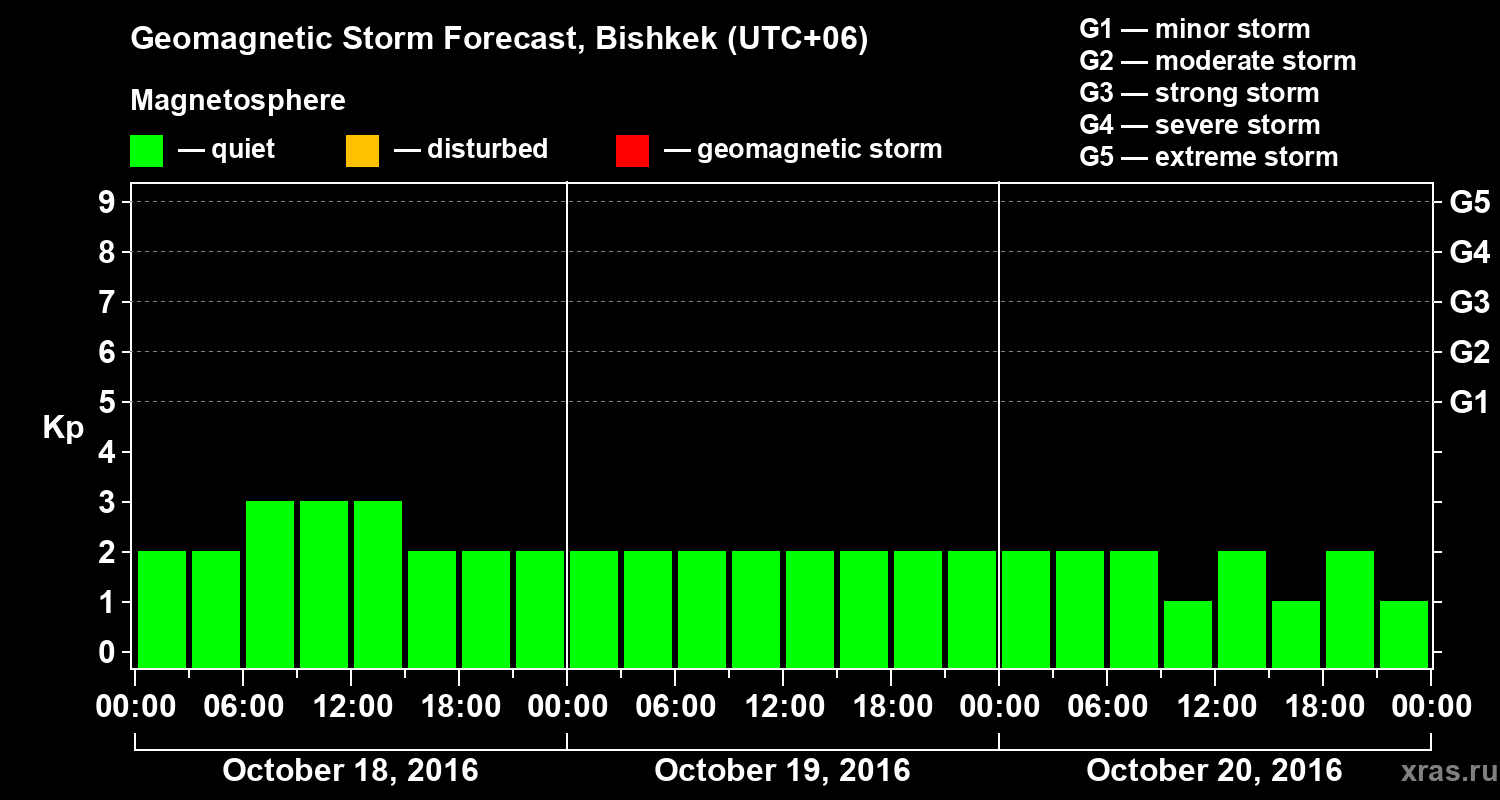 Geomagnetic storm forecast in Bishkek for Oct 18, 2016