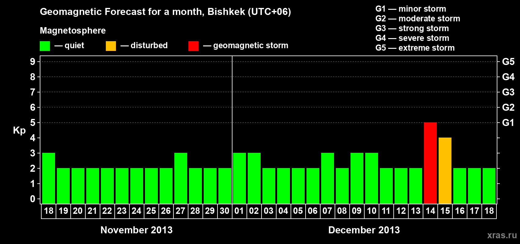 Geomagnetic activity forecast in Bishkek — Nov 18, 2013