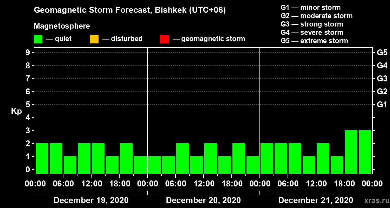 Geomagnetic activity forecast in Bishkek — Dec 19, 2020