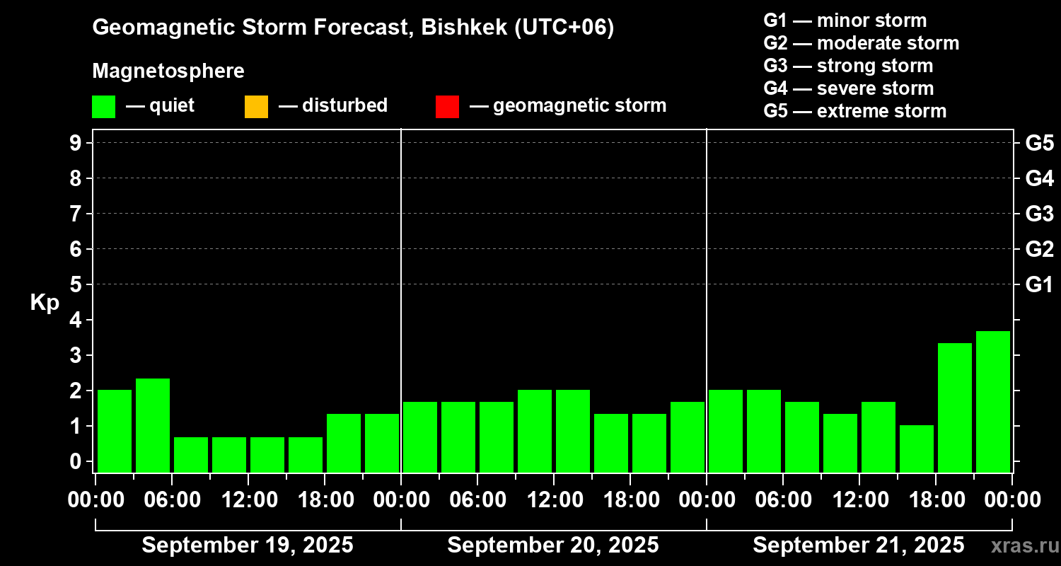 Geomagnetic storm forecast in Bishkek for Sep 19, 2025