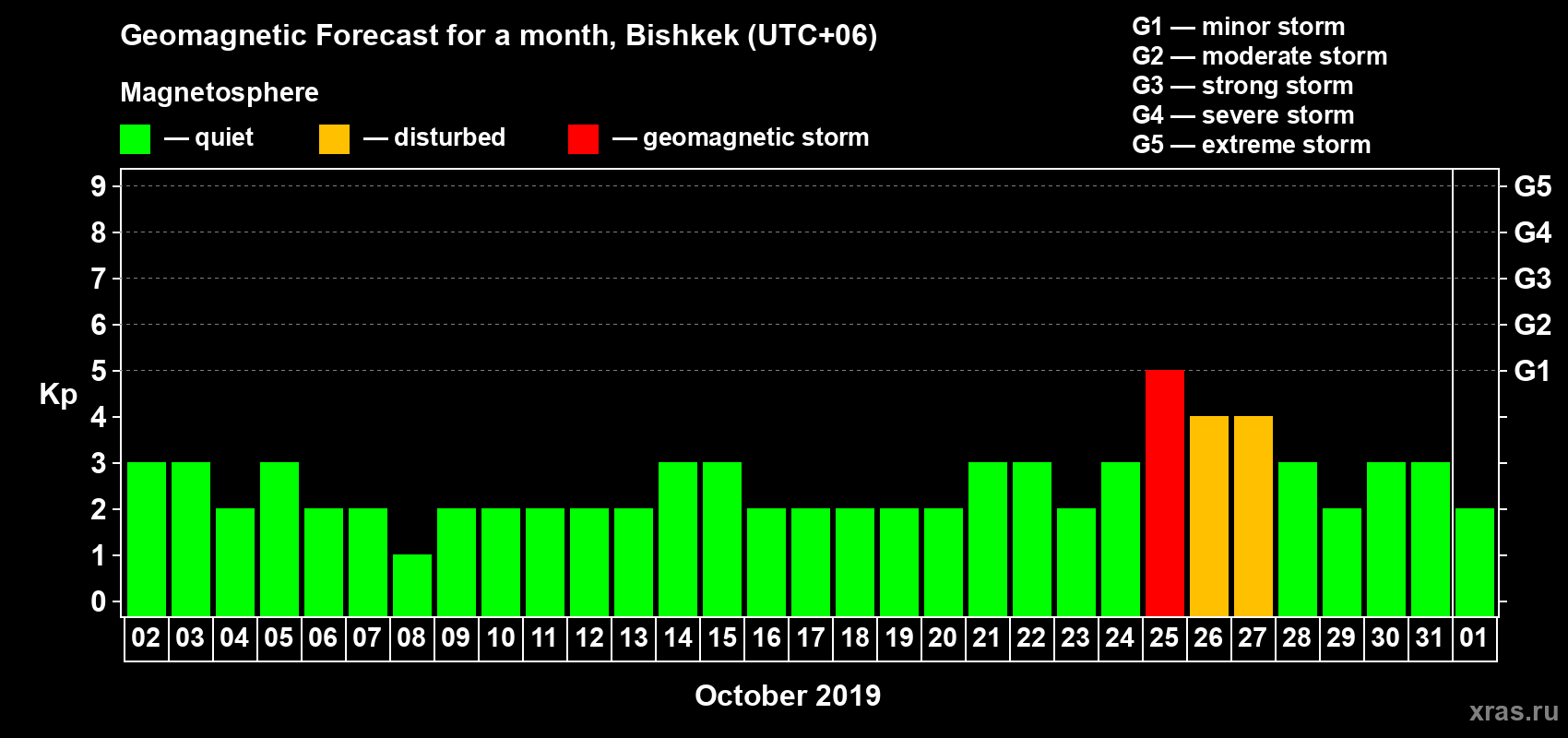 Geomagnetic activity forecast in Bishkek — Oct 02, 2019