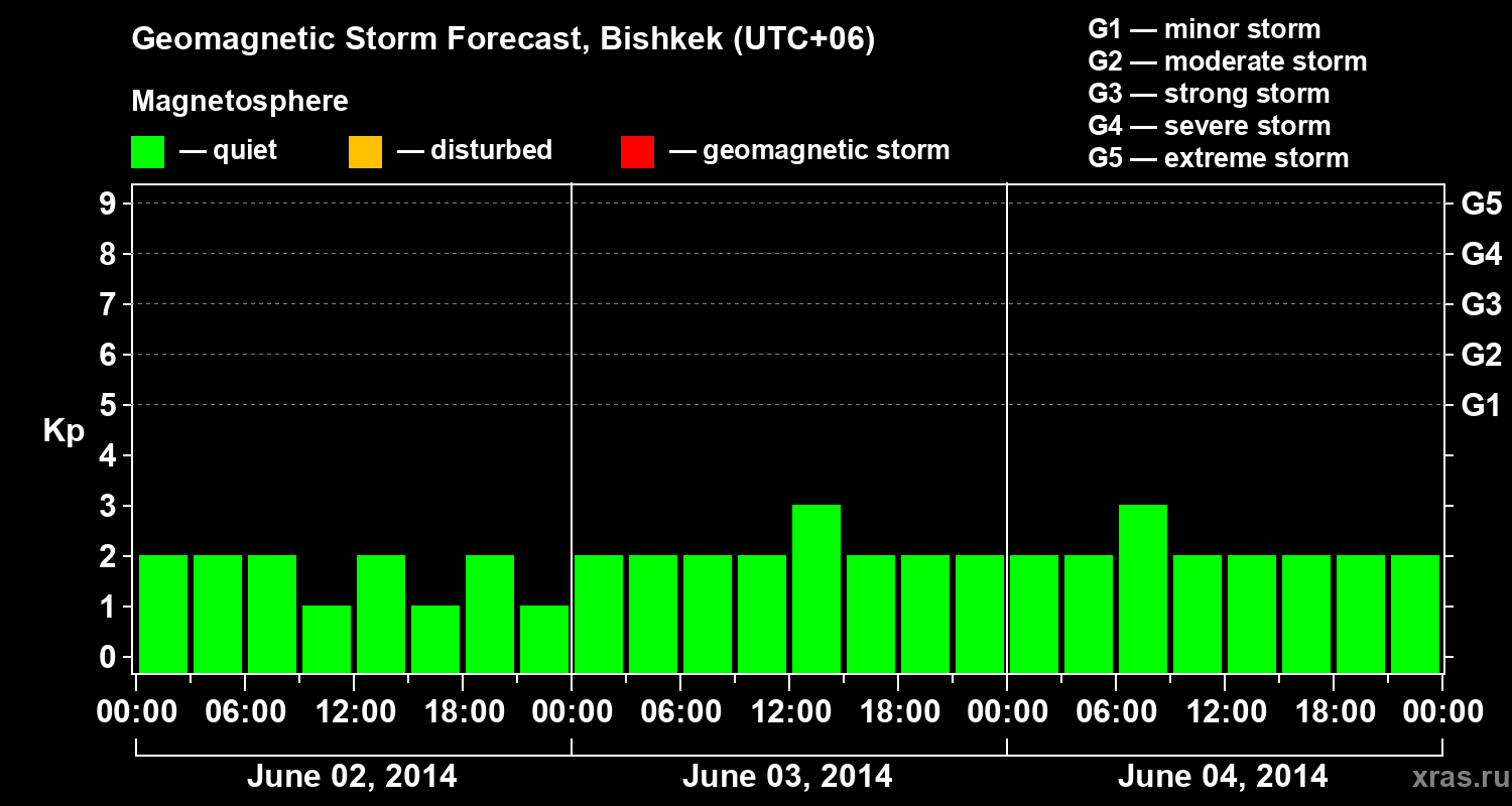 Geomagnetic activity forecast in Bishkek — Jun 02, 2014