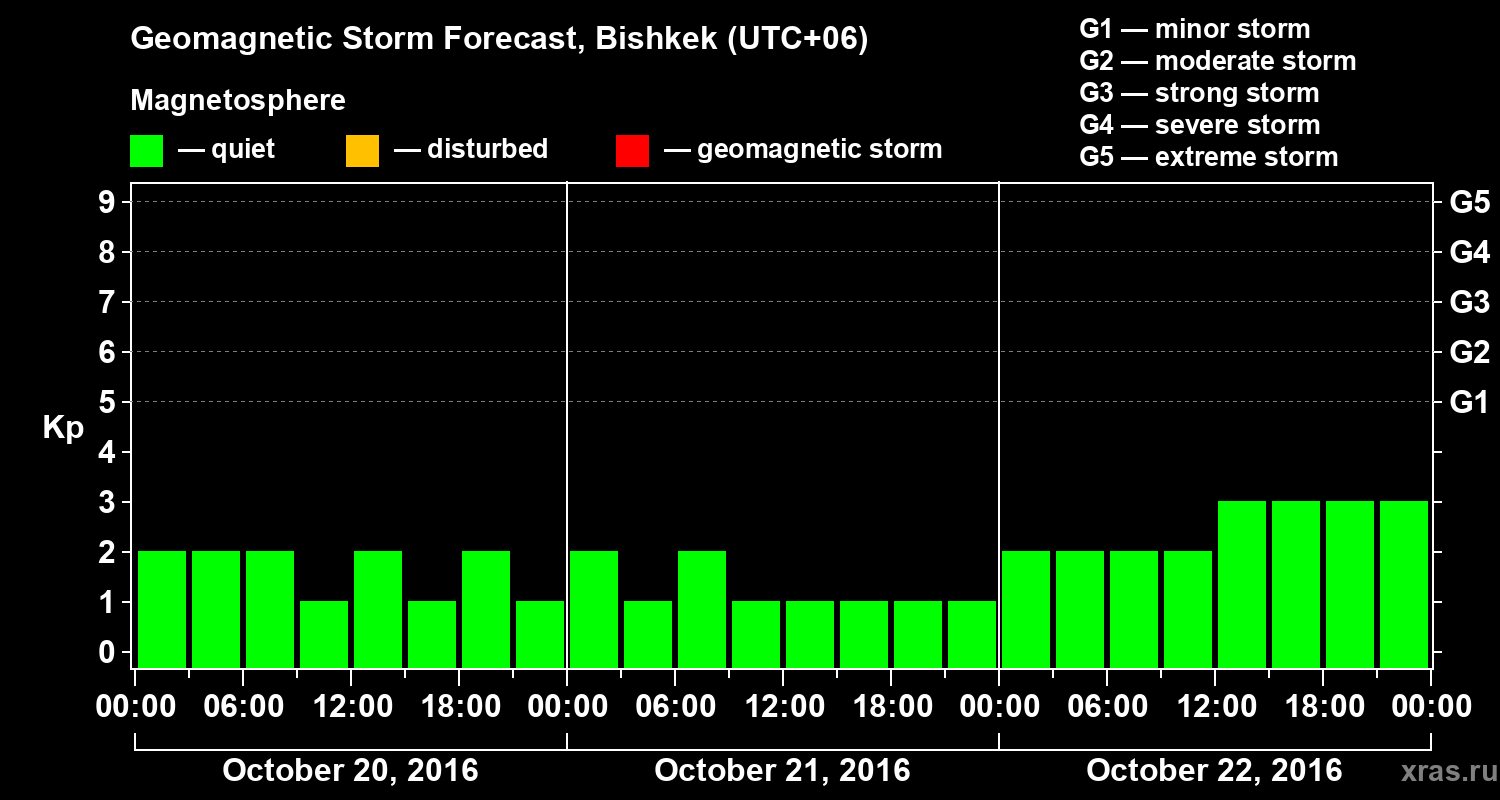 Geomagnetic activity forecast in Bishkek — Oct 20, 2016