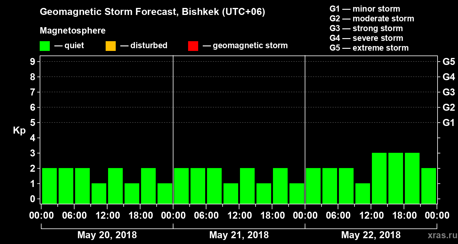 Geomagnetic activity forecast in Bishkek — May 20, 2018