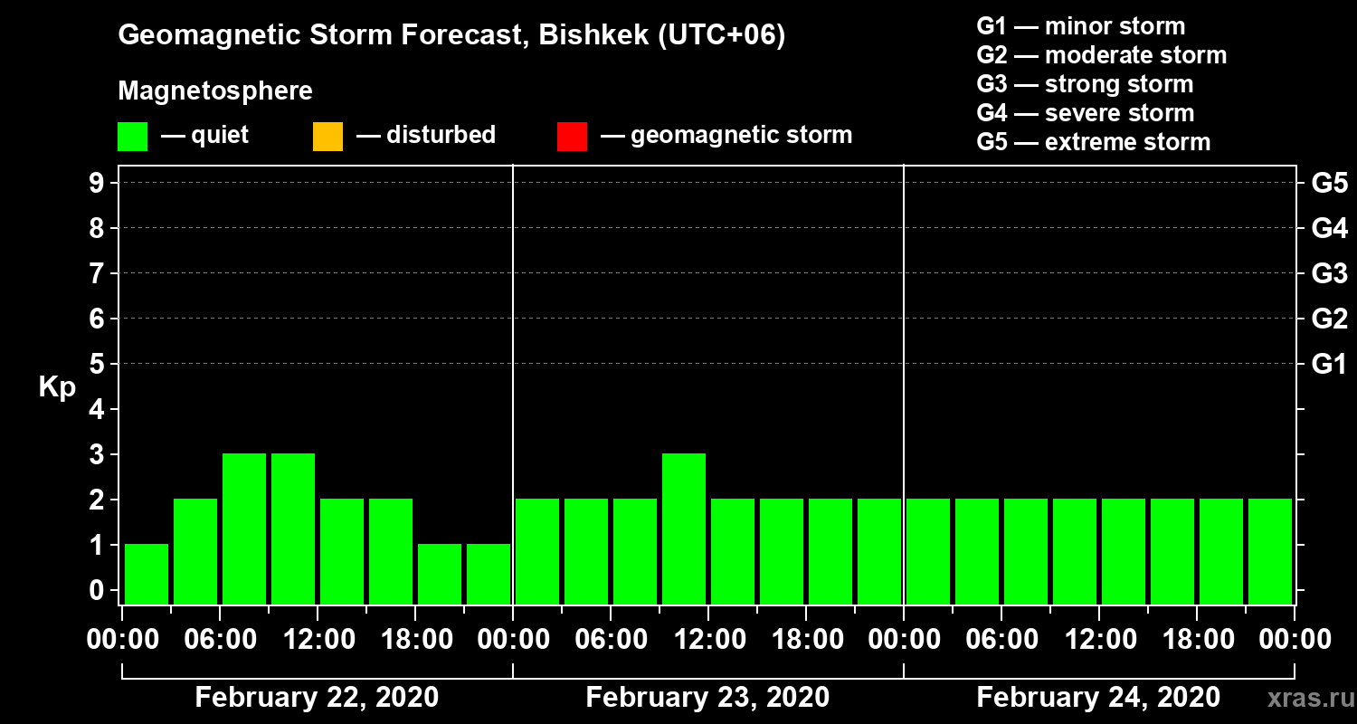 Geomagnetic activity forecast in Bishkek — Feb 22, 2020
