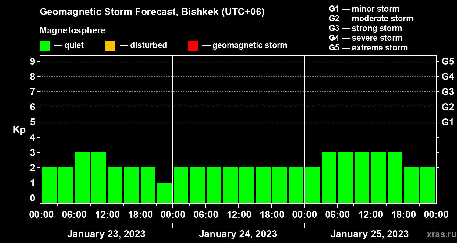 Geomagnetic activity forecast in Bishkek — Jan 23, 2023
