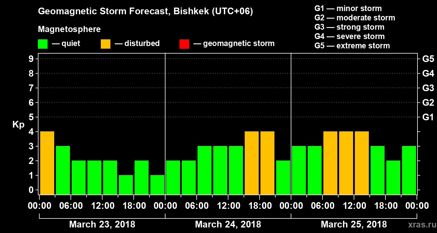 Geomagnetic storm forecast in Bishkek for Mar 23, 2018