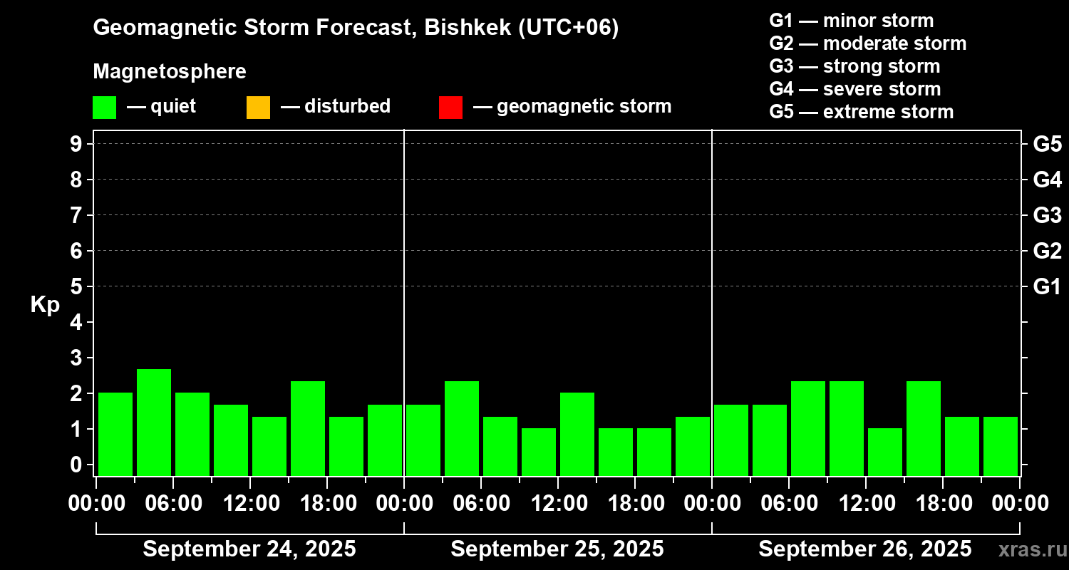 Geomagnetic storm forecast in Bishkek for Sep 24, 2025