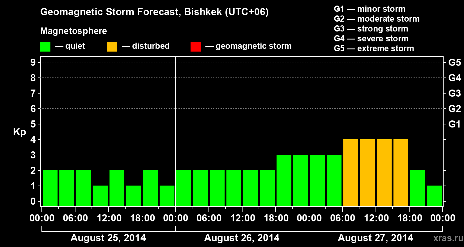 Geomagnetic storm forecast in Bishkek for Aug 25, 2014
