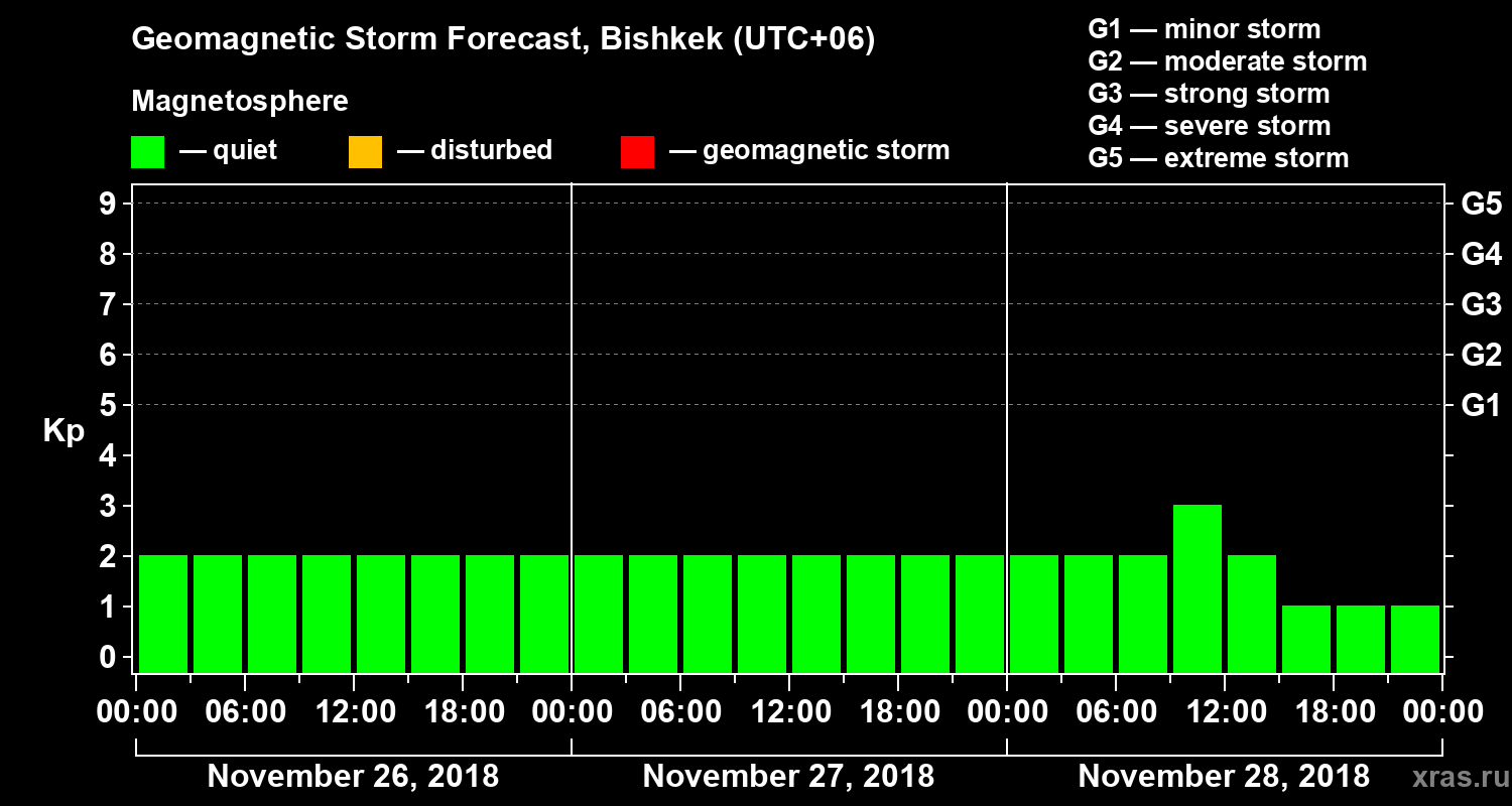 Geomagnetic activity forecast in Bishkek — Nov 26, 2018
