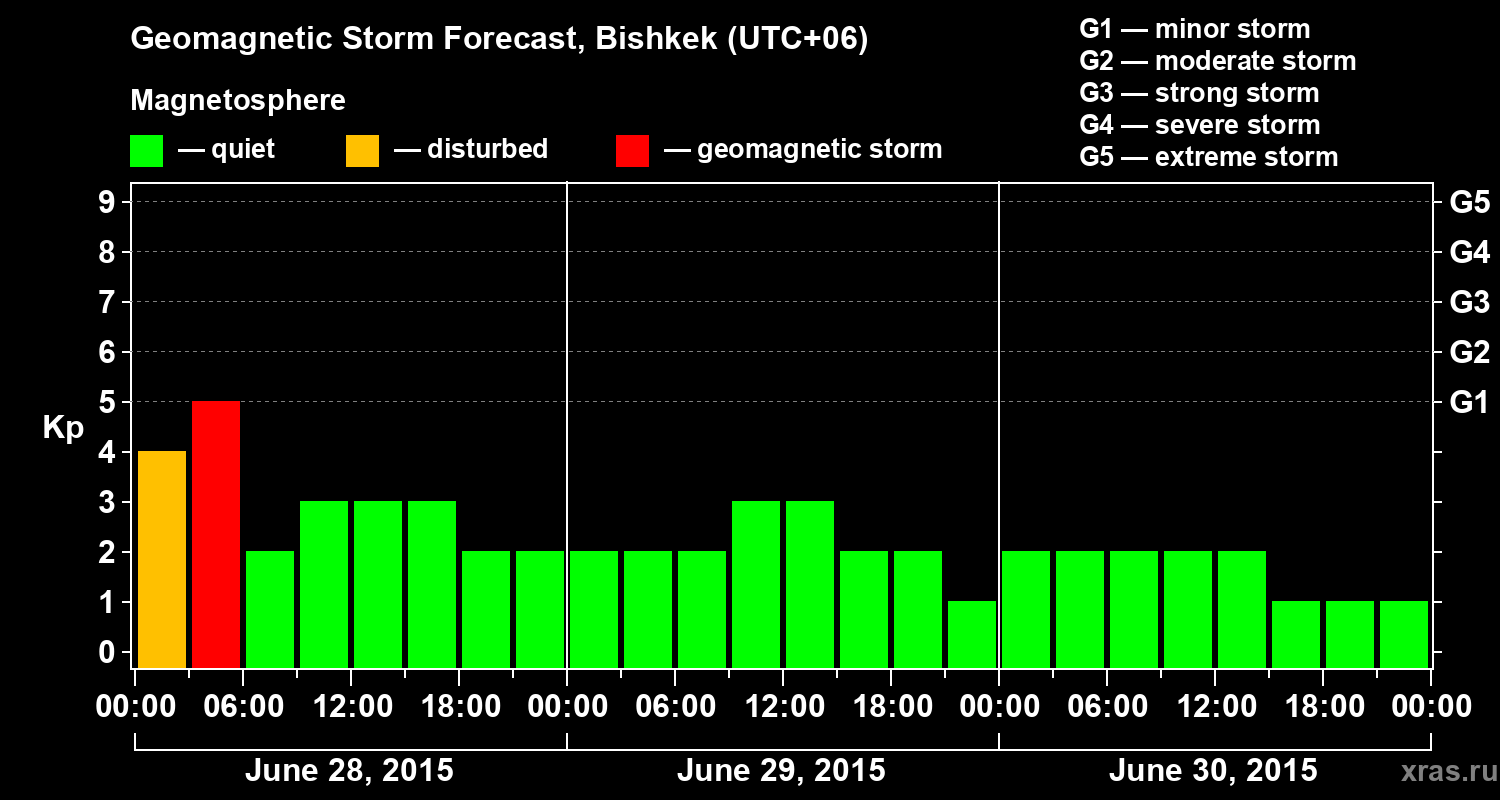 Geomagnetic storm forecast in Bishkek for Jun 28, 2015
