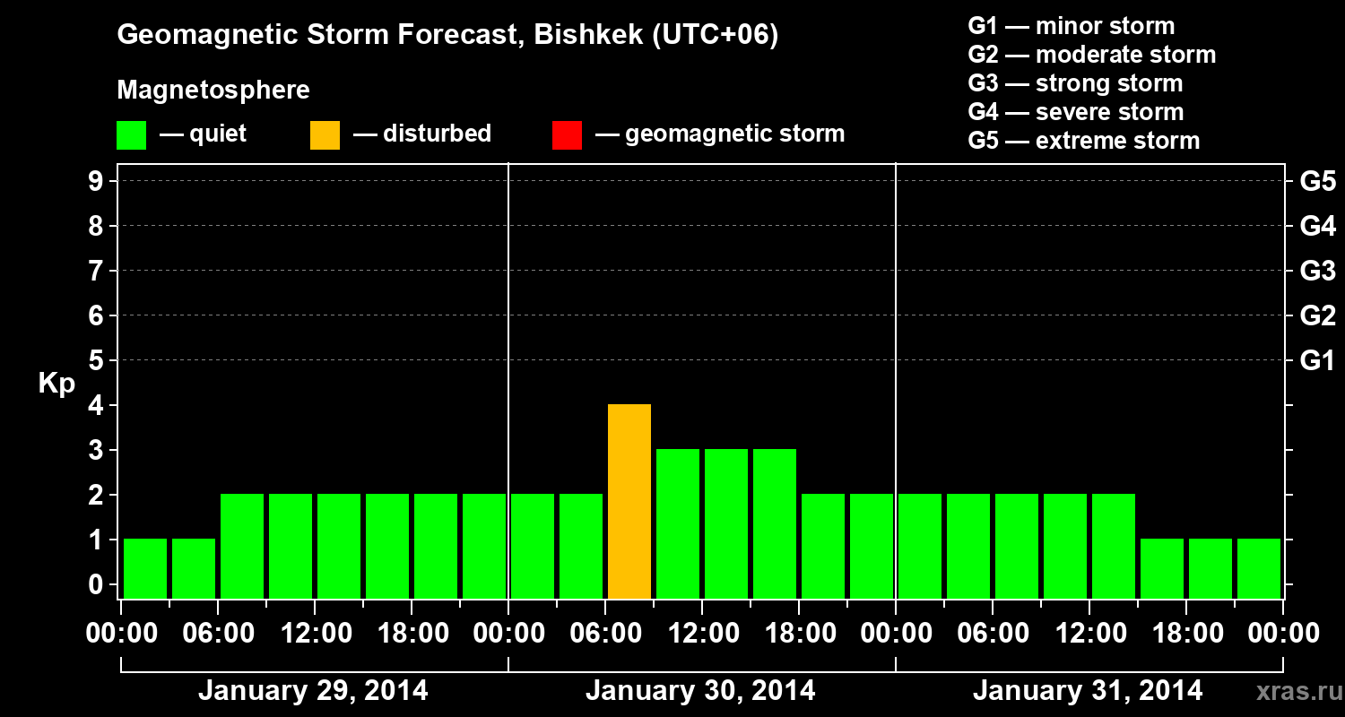 Geomagnetic storm forecast in Bishkek for Jan 29, 2014