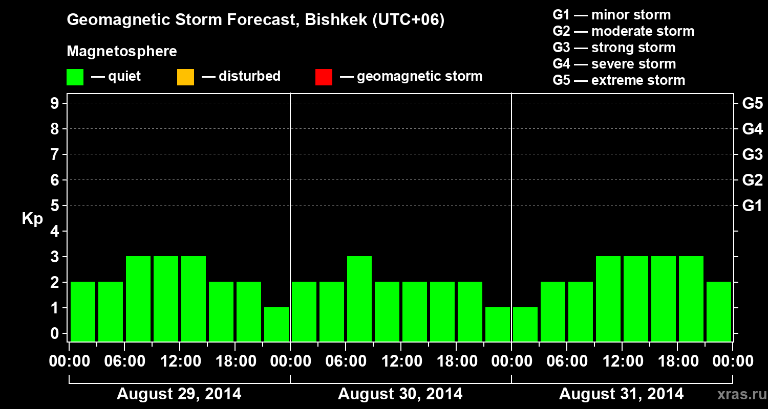 Geomagnetic storm forecast in Bishkek for Aug 29, 2014