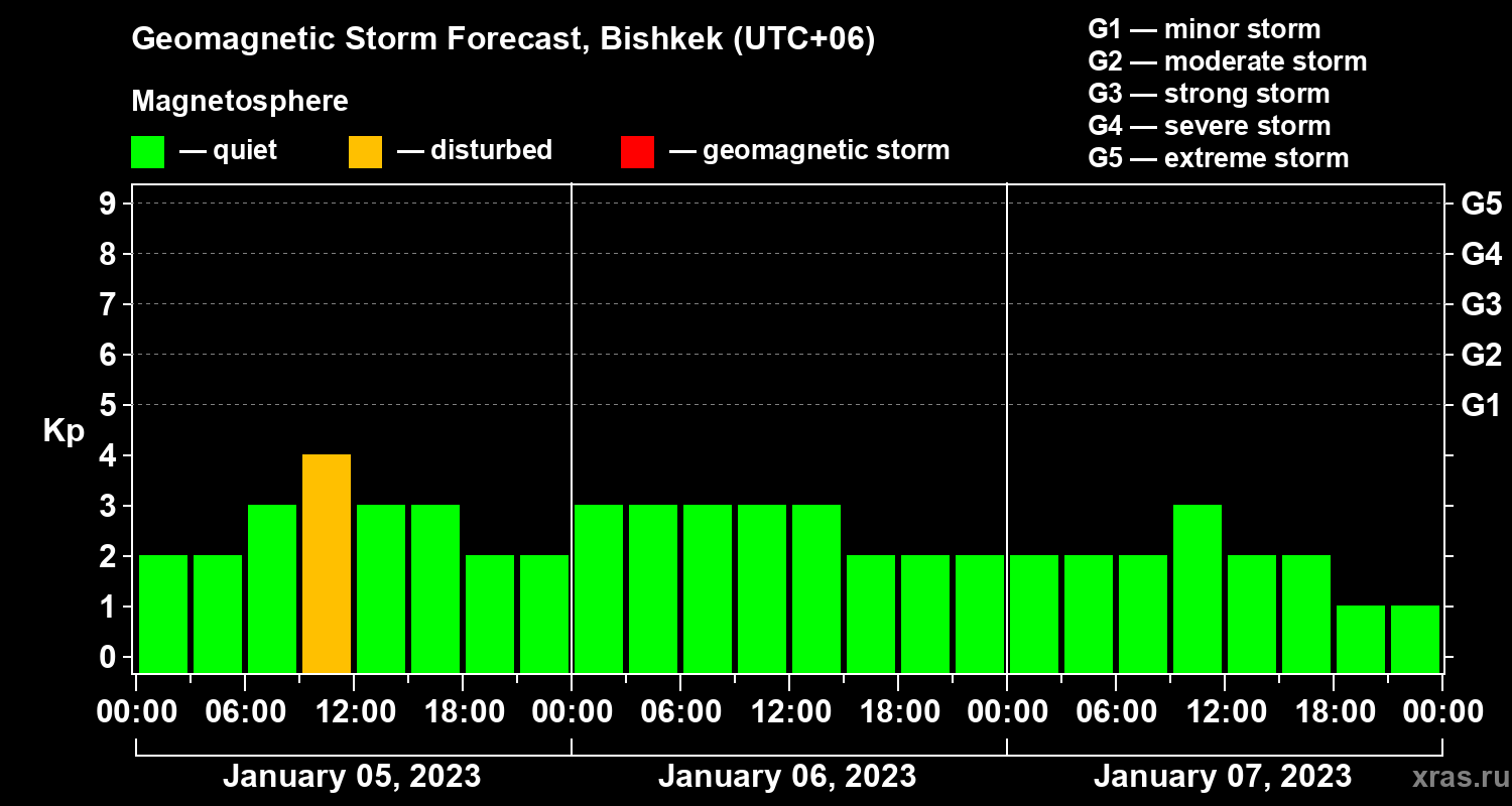 Geomagnetic activity forecast in Bishkek — Jan 05, 2023
