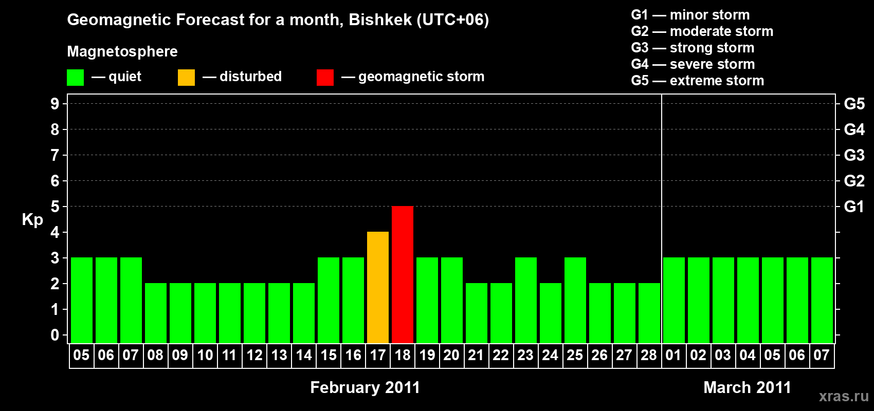 Geomagnetic storm forecast in Bishkek for Feb 05, 2011