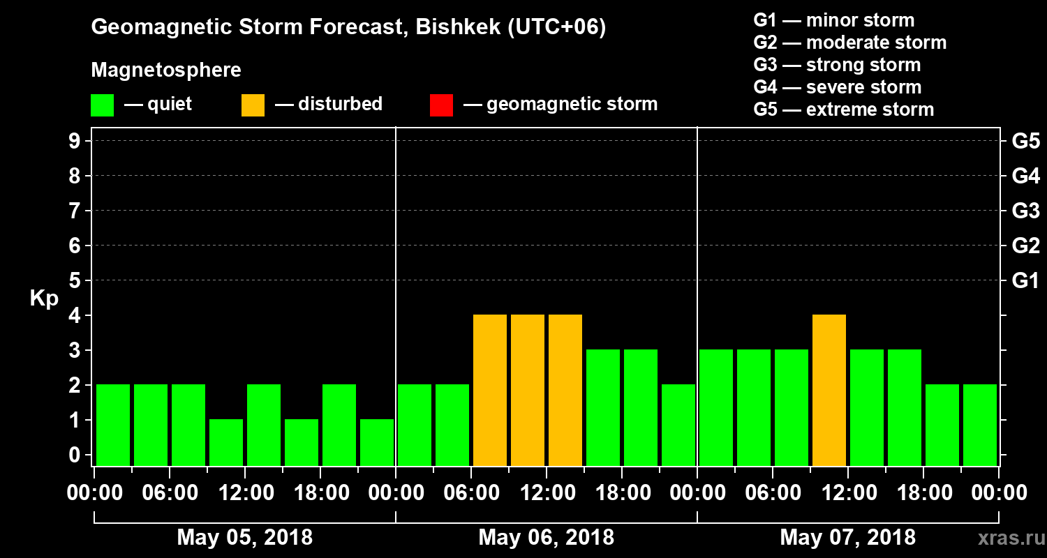 Geomagnetic activity forecast in Bishkek — May 05, 2018