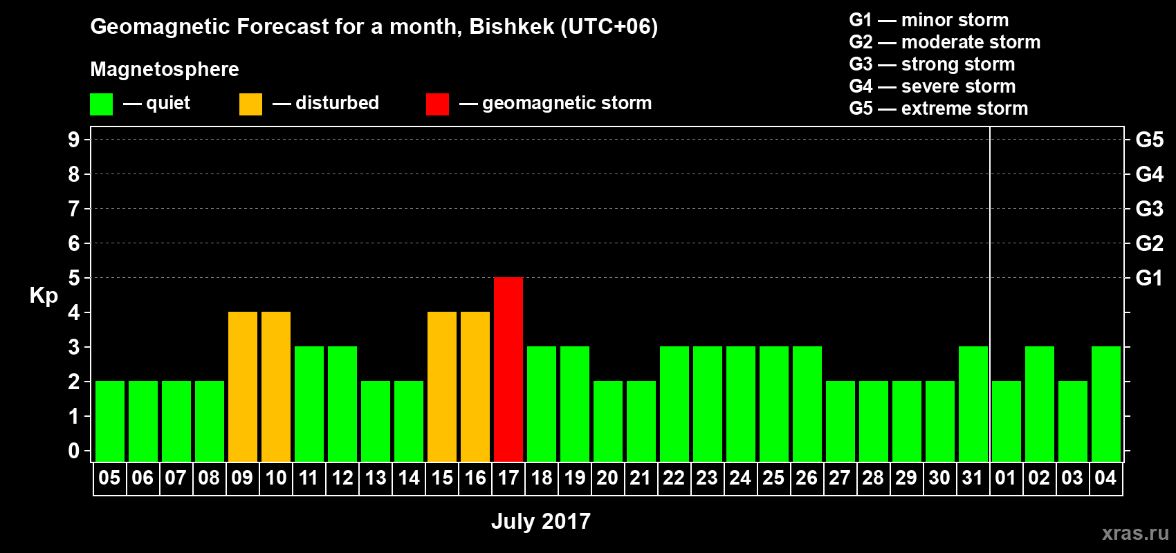 Geomagnetic storm forecast in Bishkek for Jul 05, 2017