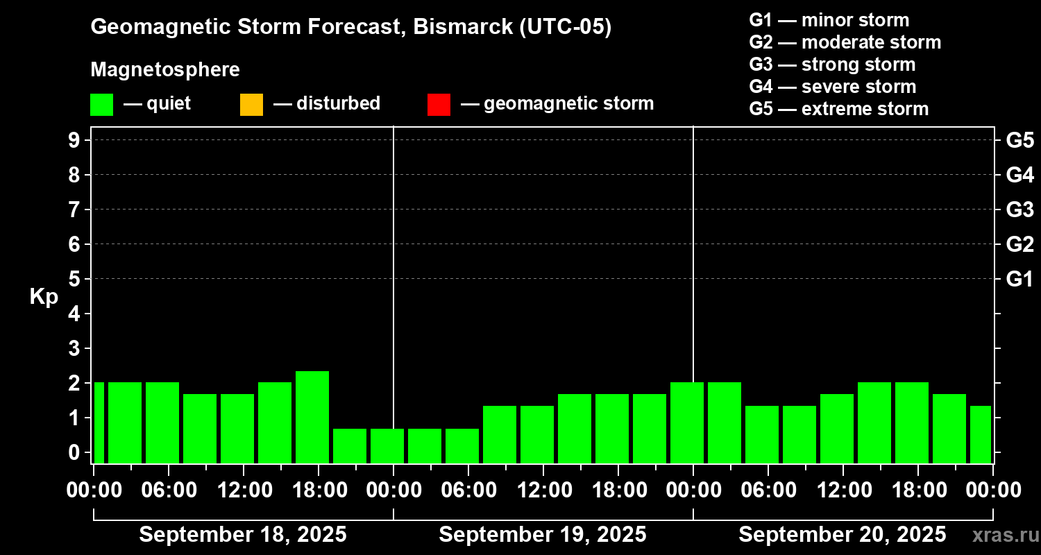 Geomagnetic storm forecast in Bismarck for Sep 18, 2025