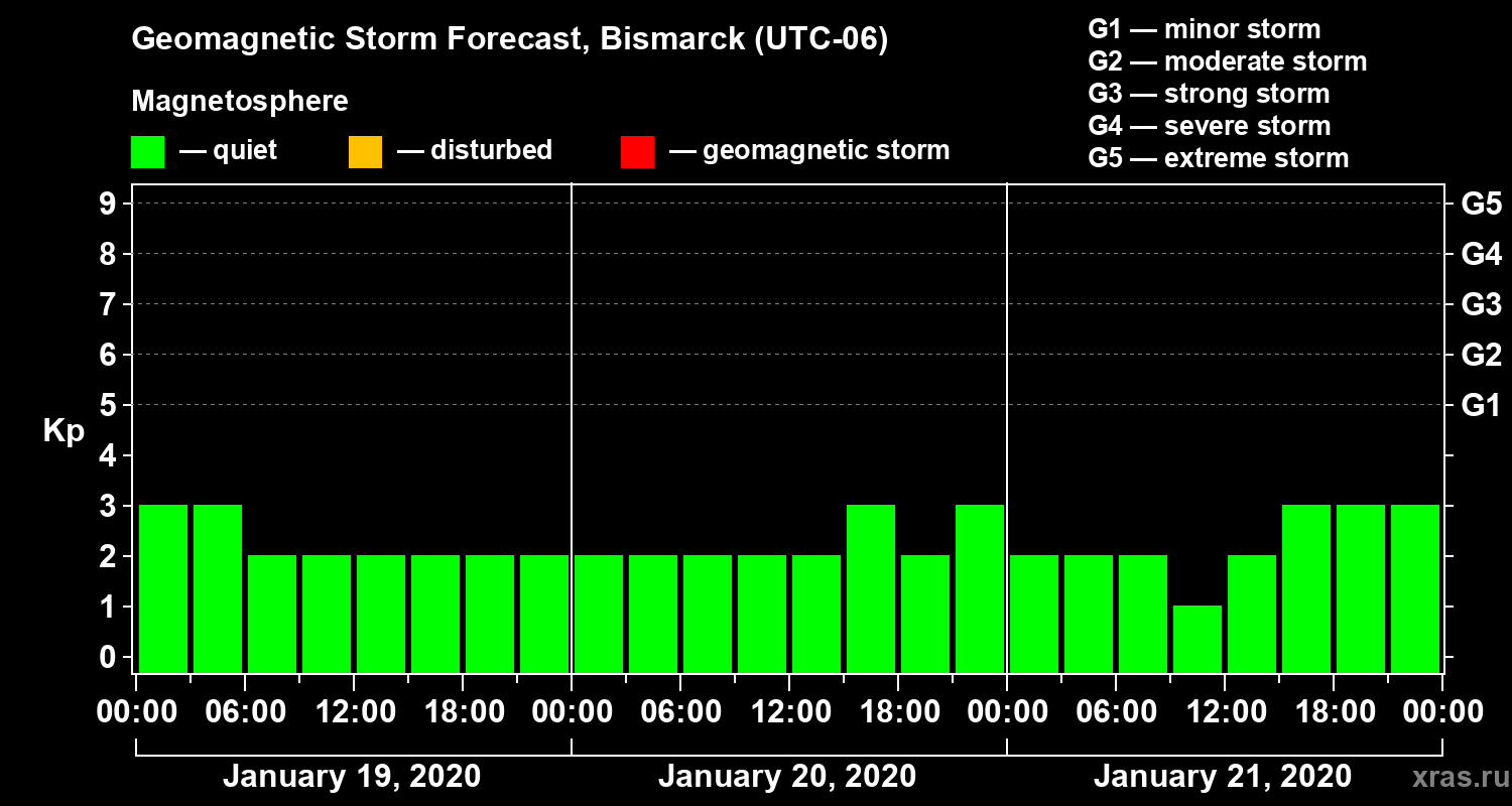 Geomagnetic storm forecast in Bismarck for Jan 19, 2020