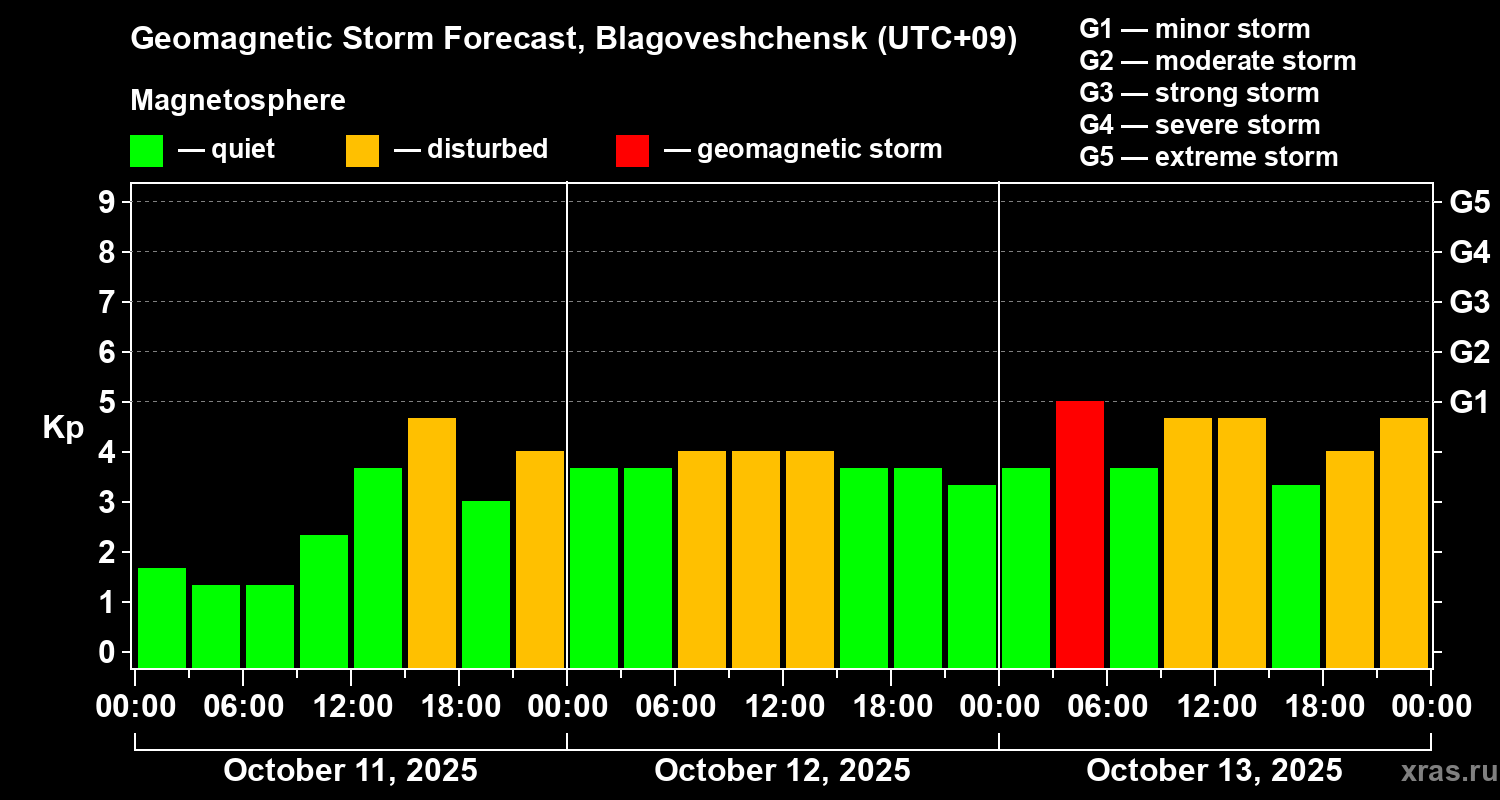 Geomagnetic storm forecast in Blagoveshchensk for Oct 11, 2025