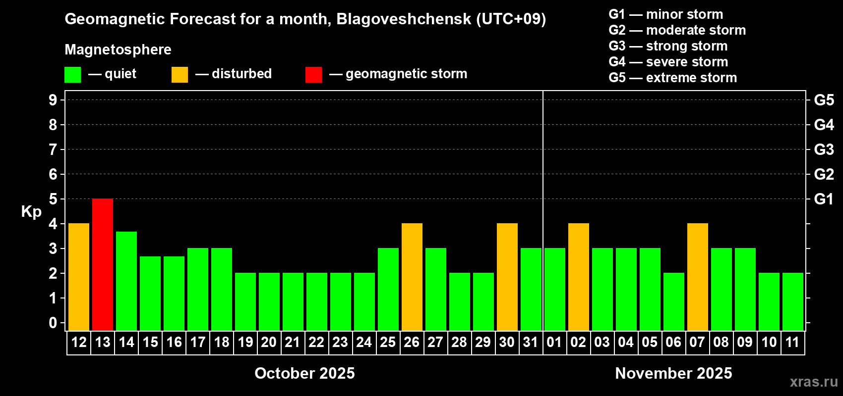 Geomagnetic storm forecast in Blagoveshchensk for Oct 12, 2025