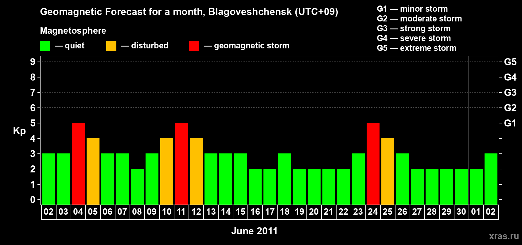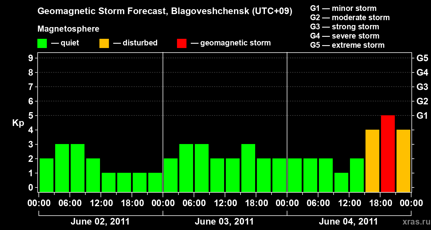 Geomagnetic storm forecast in Blagoveshchensk for Jun 02, 2011