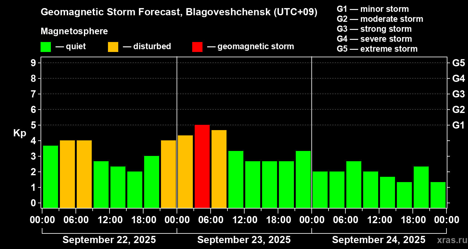 Geomagnetic storm forecast in Blagoveshchensk for Sep 22, 2025