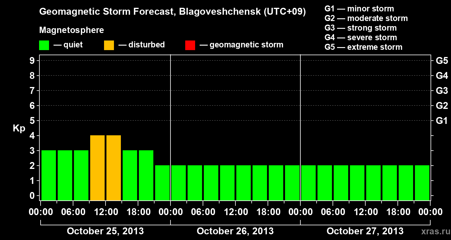 Geomagnetic storm forecast in Blagoveshchensk for Oct 25, 2013
