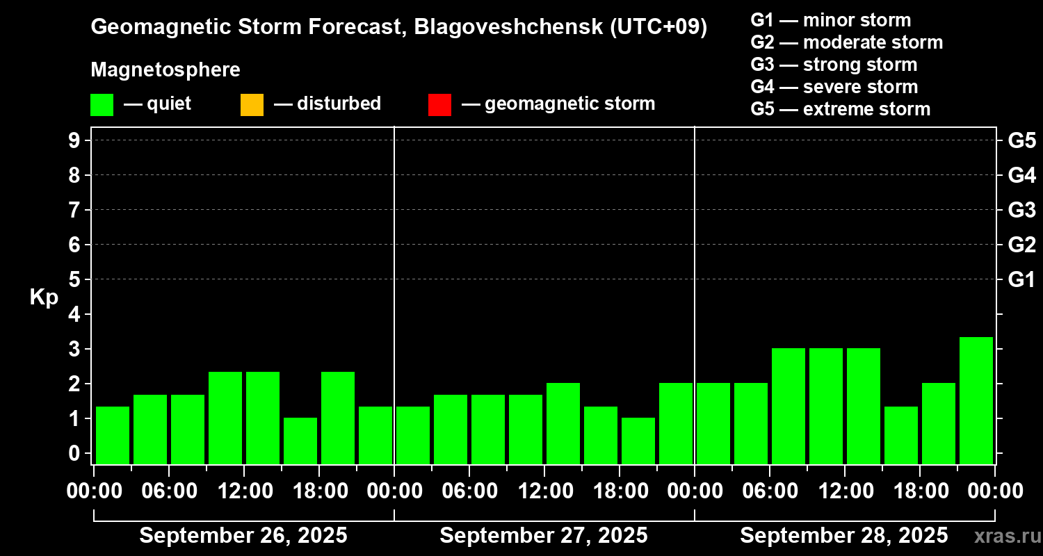 Geomagnetic storm forecast in Blagoveshchensk for Sep 26, 2025