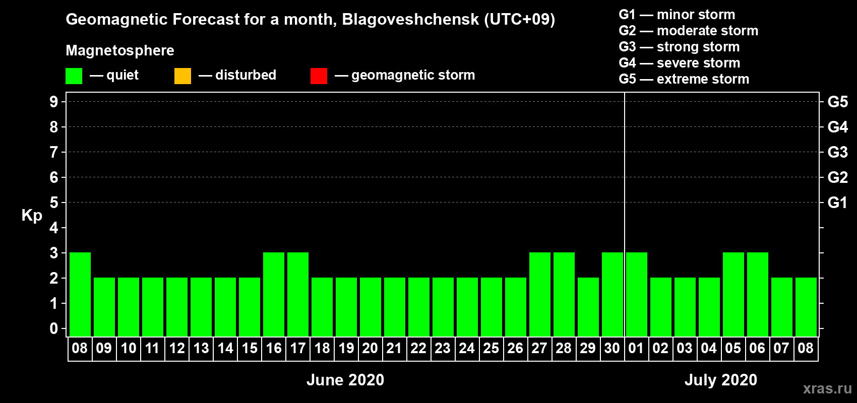 Geomagnetic activity forecast in Blagoveshchensk — Jun 08, 2020