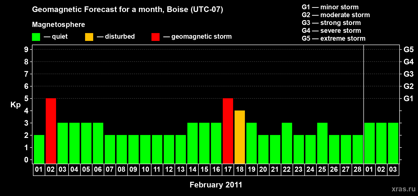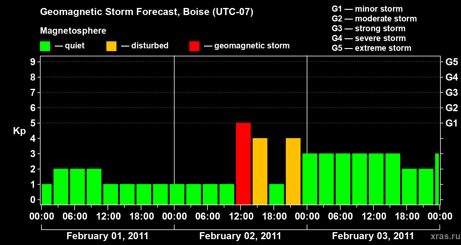 Geomagnetic storm forecast in Boise for Feb 01, 2011