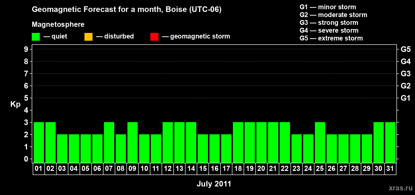 Geomagnetic storm forecast in Boise for Jul 01, 2011