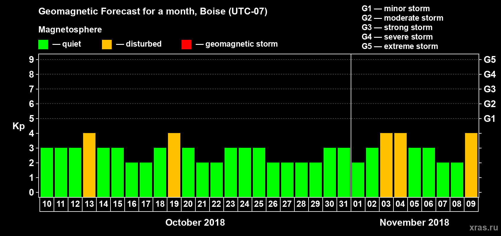 Geomagnetic storm forecast in Boise for Oct 10, 2018