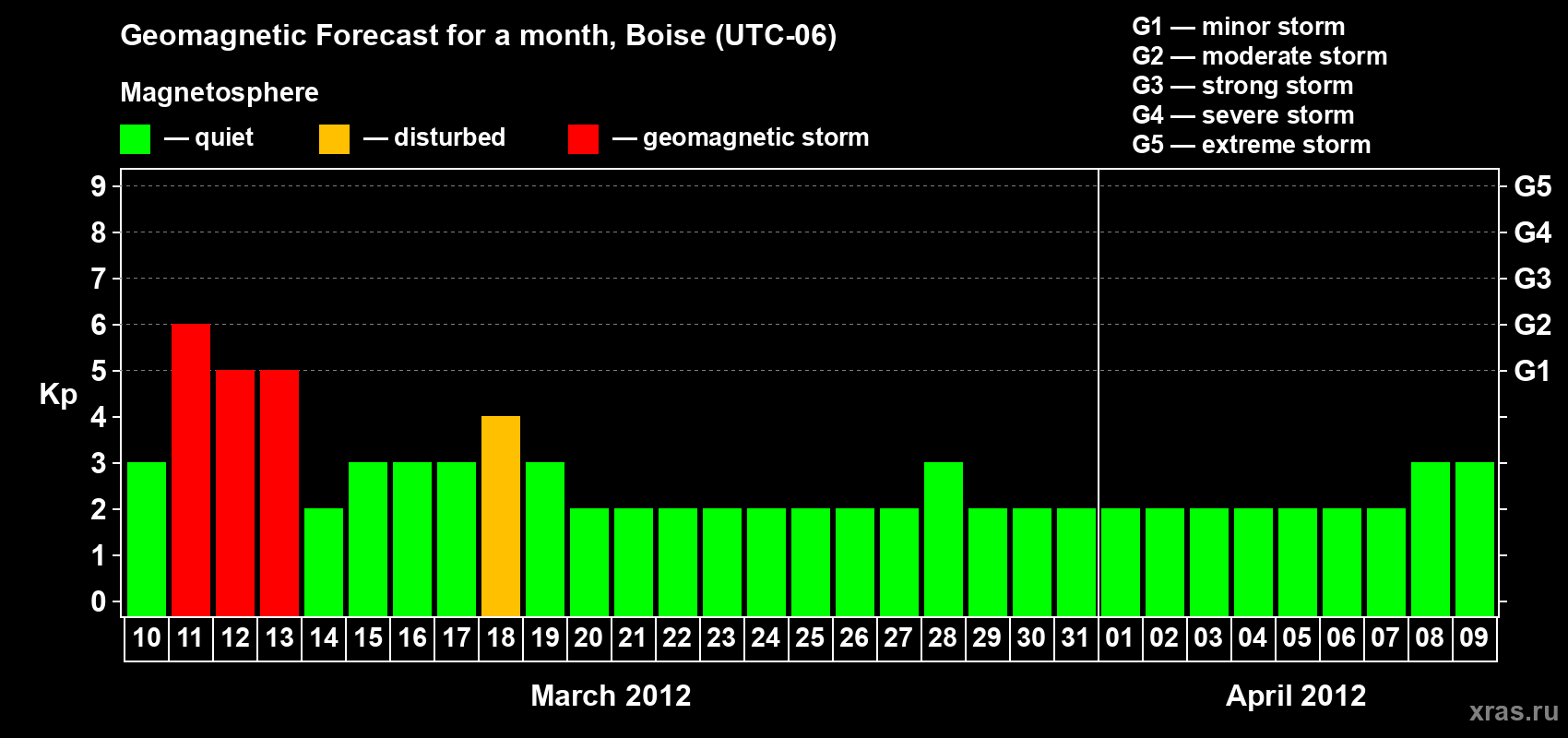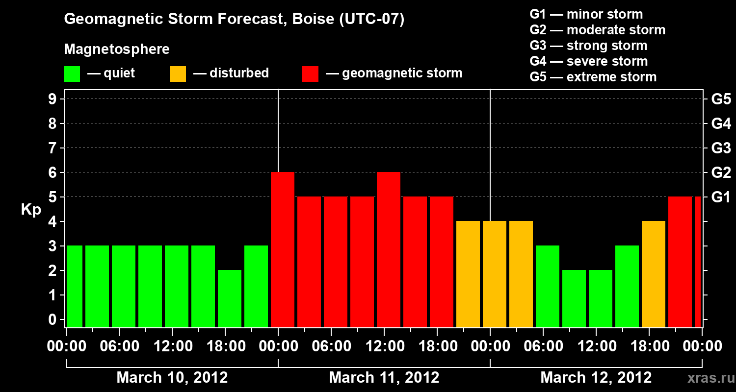 Geomagnetic storm forecast in Boise for Mar 10, 2012
