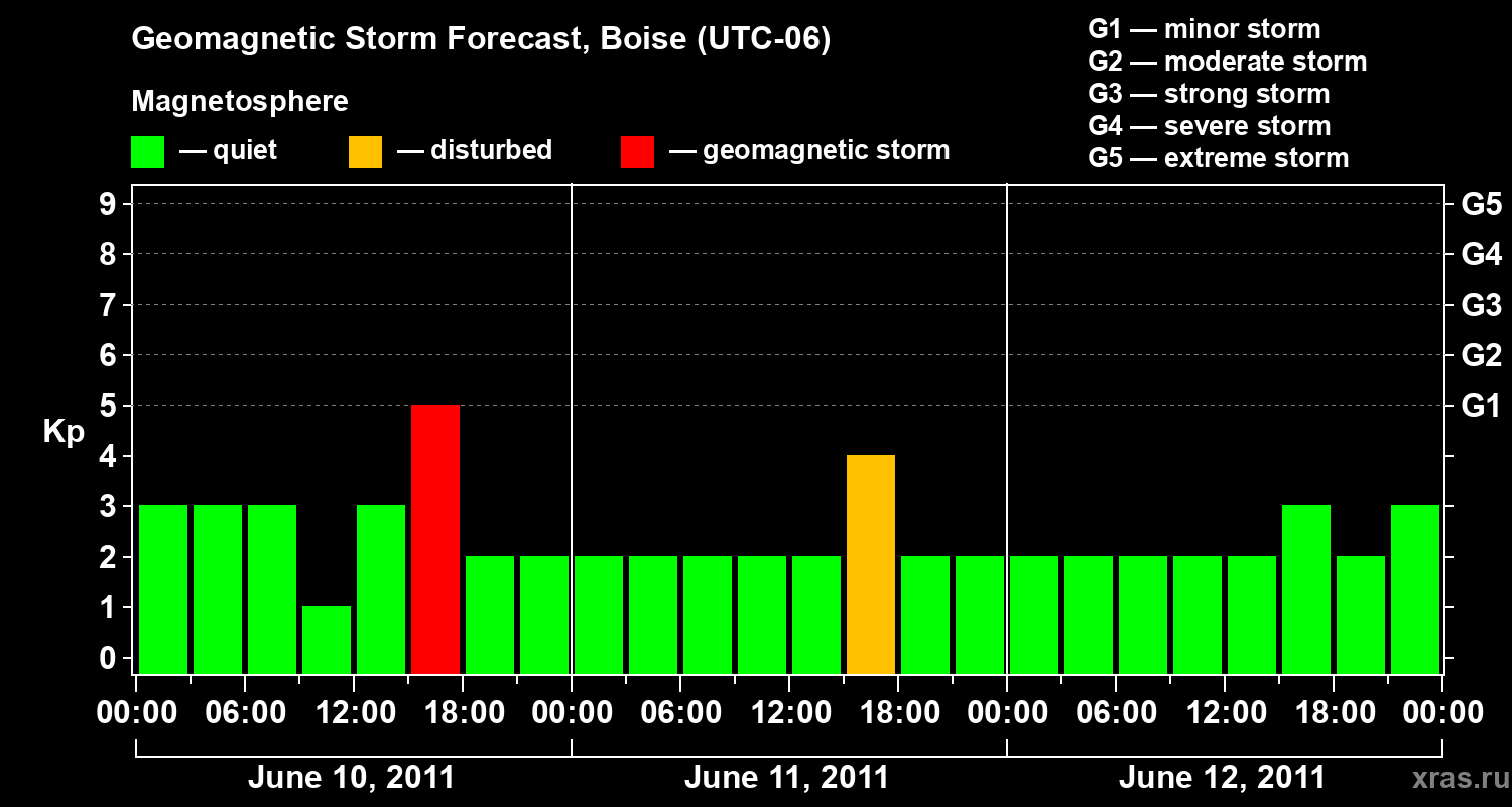 Geomagnetic storm forecast in Boise for Jun 10, 2011