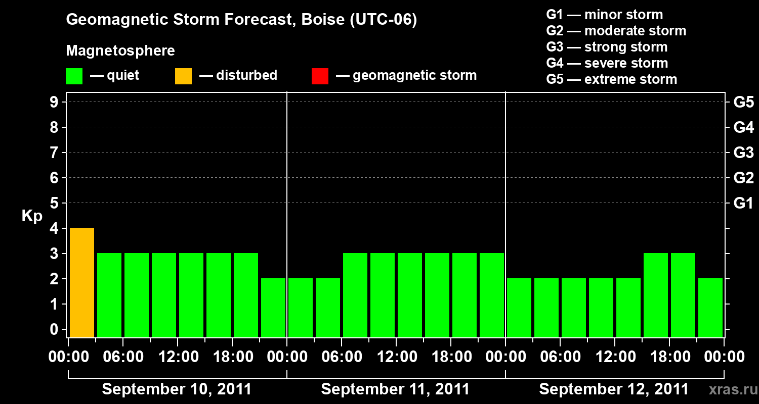 Geomagnetic storm forecast in Boise for Sep 10, 2011
