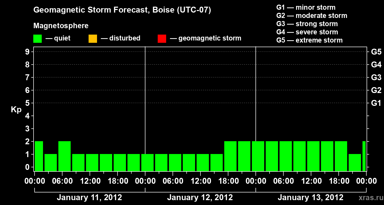 Geomagnetic storm forecast in Boise for Jan 11, 2012