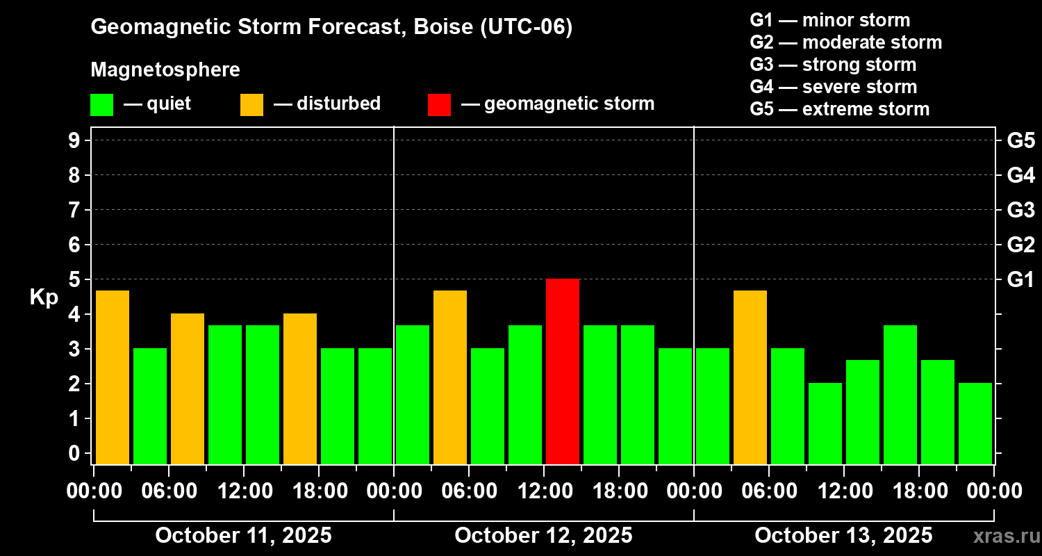 Geomagnetic storm forecast in Boise for Oct 11, 2025