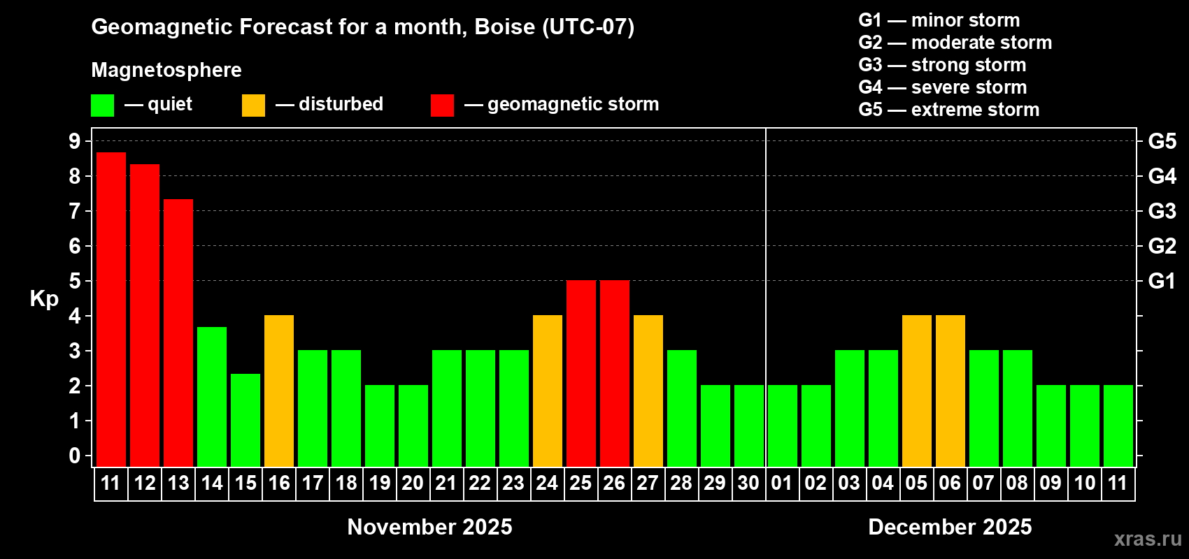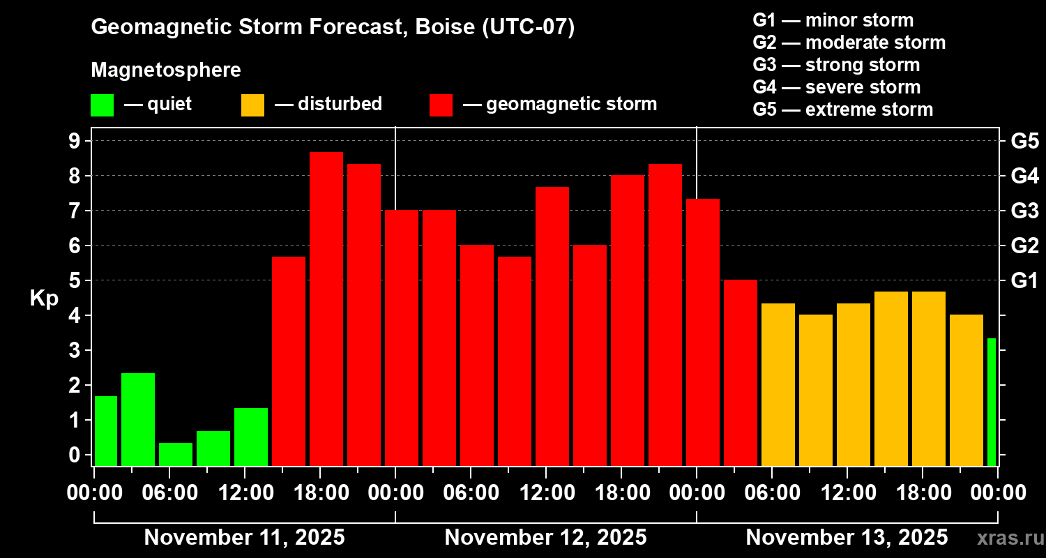 Geomagnetic storm forecast in Boise for Nov 11, 2025