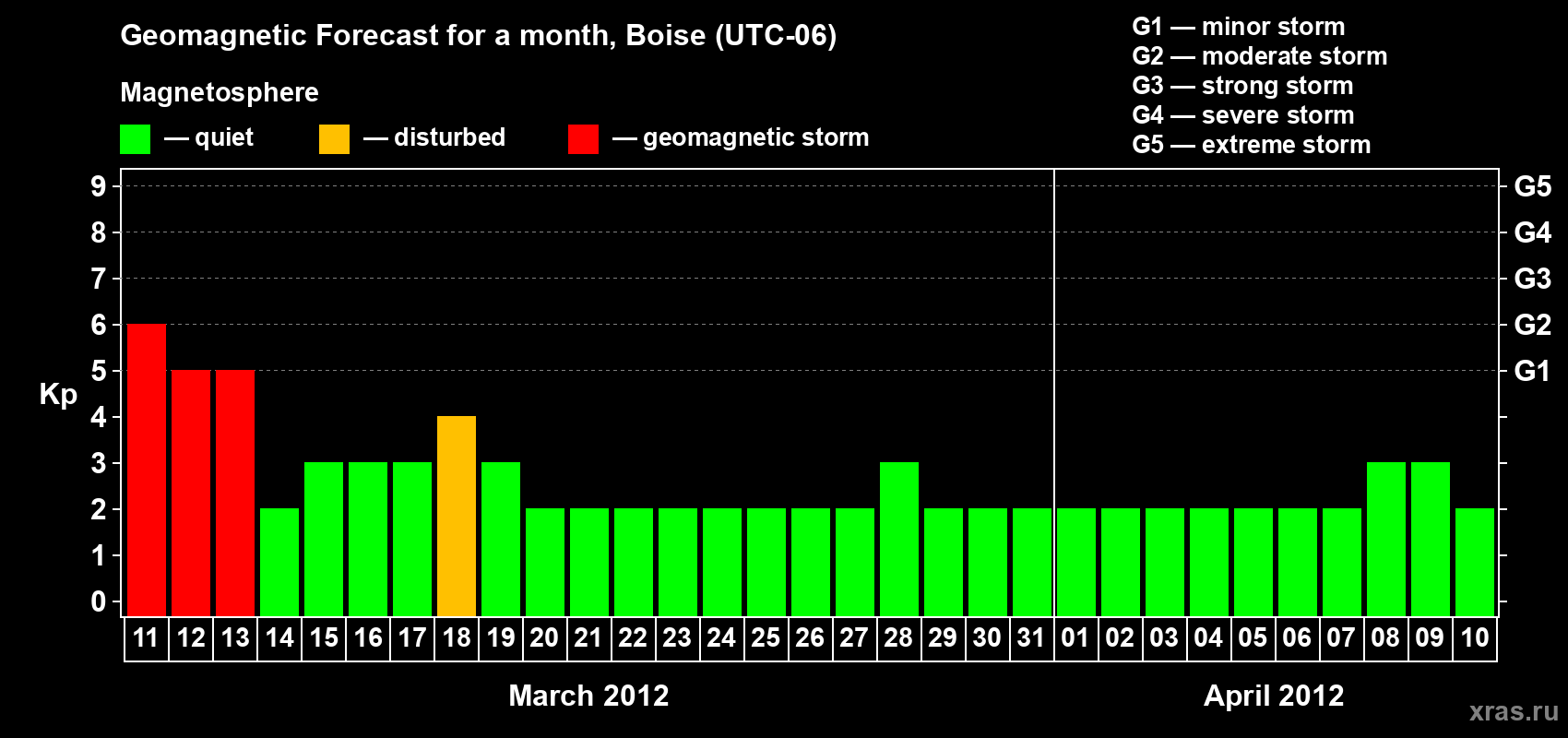 Geomagnetic storm forecast in Boise for Mar 11, 2012