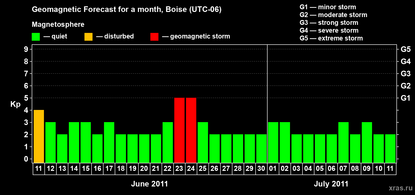 Geomagnetic storm forecast in Boise for Jun 11, 2011
