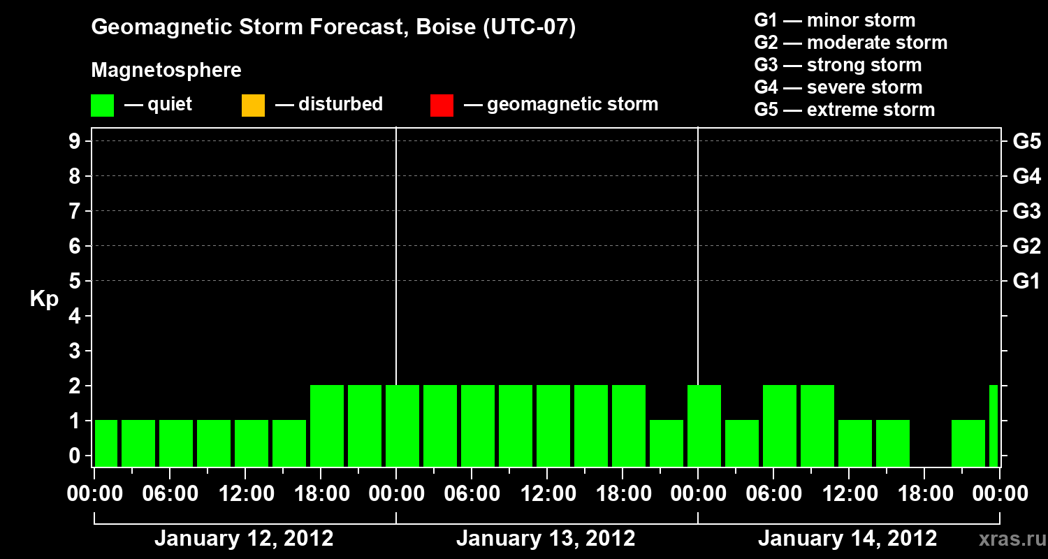 Geomagnetic storm forecast in Boise for Jan 12, 2012