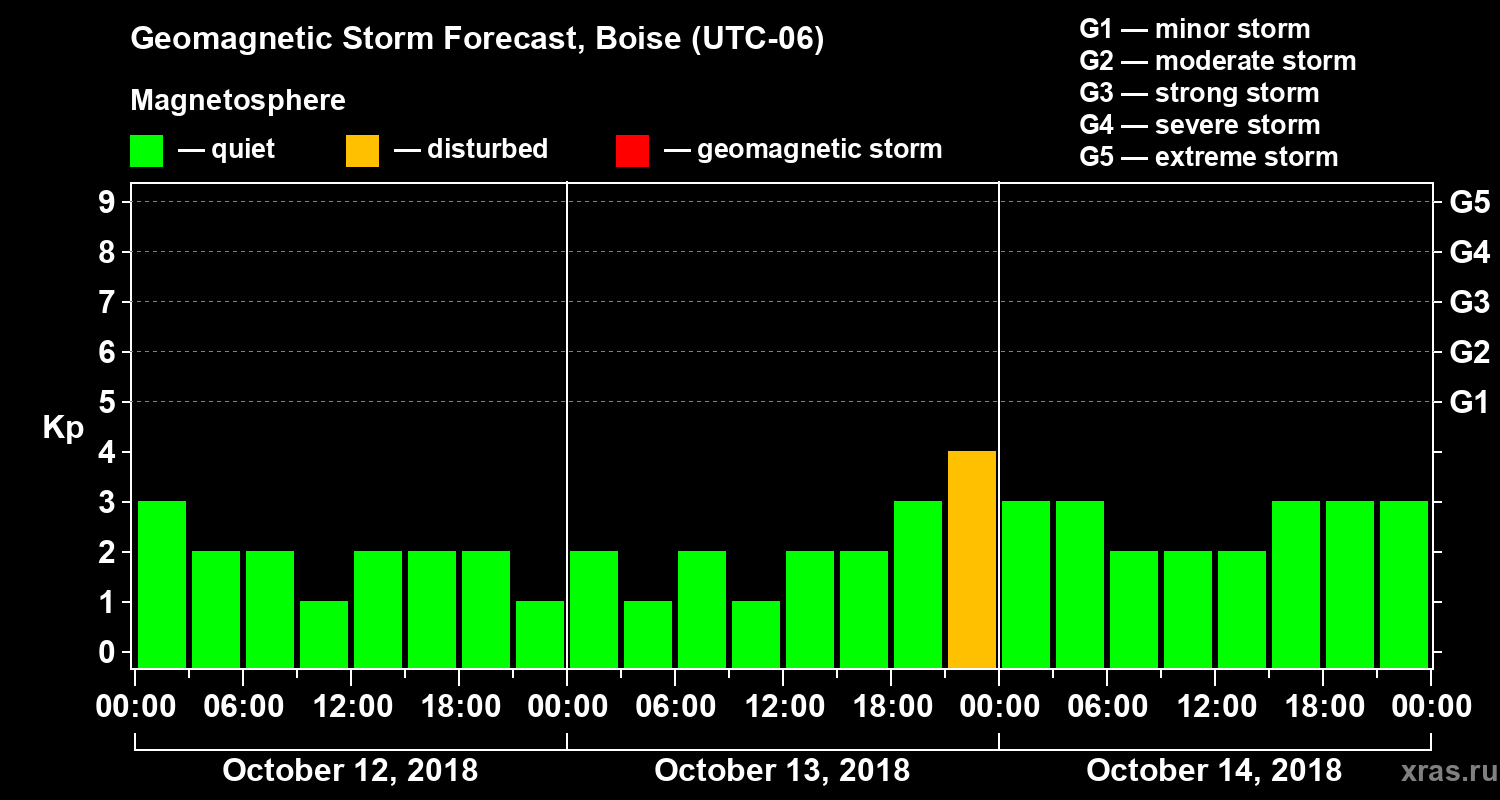 Geomagnetic storm forecast in Boise for Oct 12, 2018