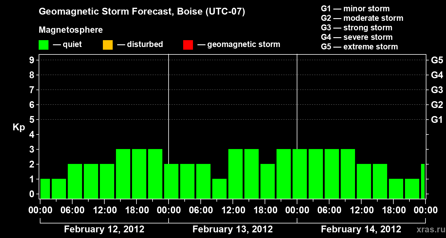 Geomagnetic storm forecast in Boise for Feb 12, 2012