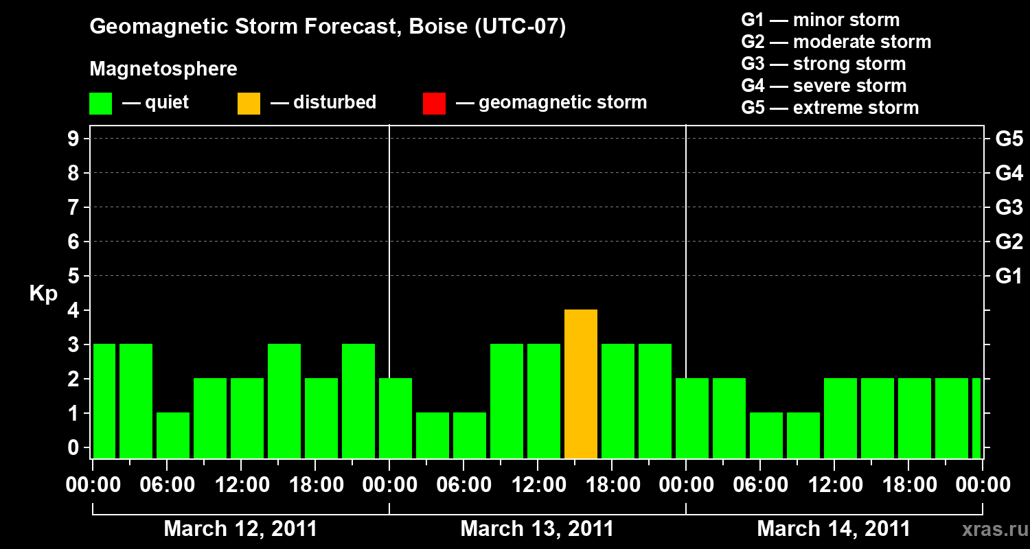 Geomagnetic storm forecast in Boise for Mar 12, 2011