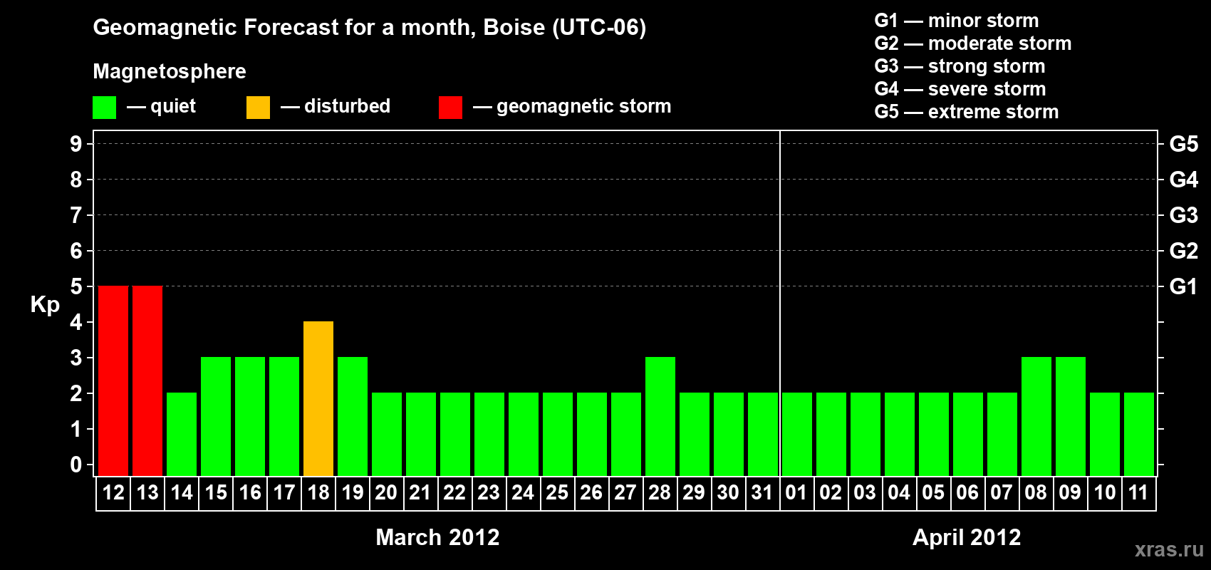 Geomagnetic storm forecast in Boise for Mar 12, 2012