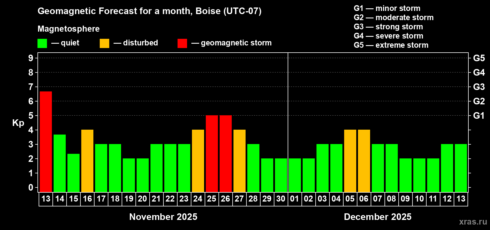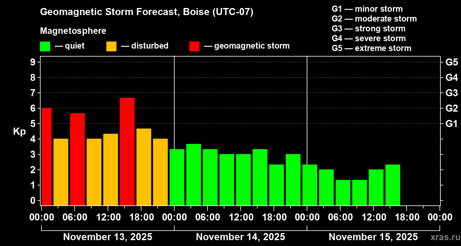 Geomagnetic storm forecast in Boise for Nov 13, 2025