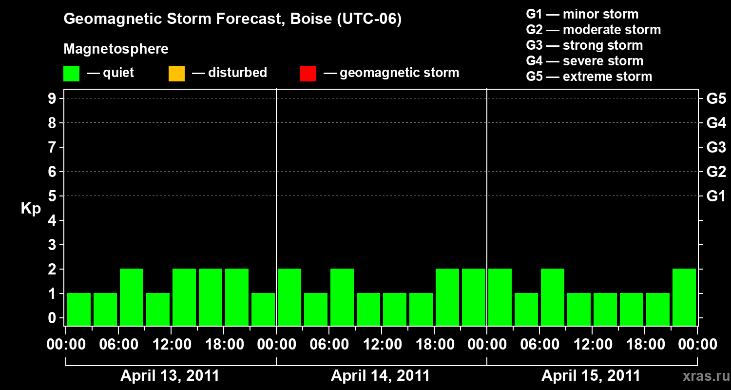 Geomagnetic storm forecast in Boise for Apr 13, 2011