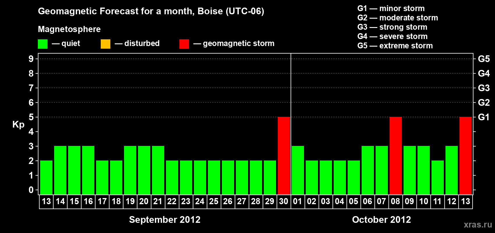 Geomagnetic storm forecast in Boise for Sep 13, 2012