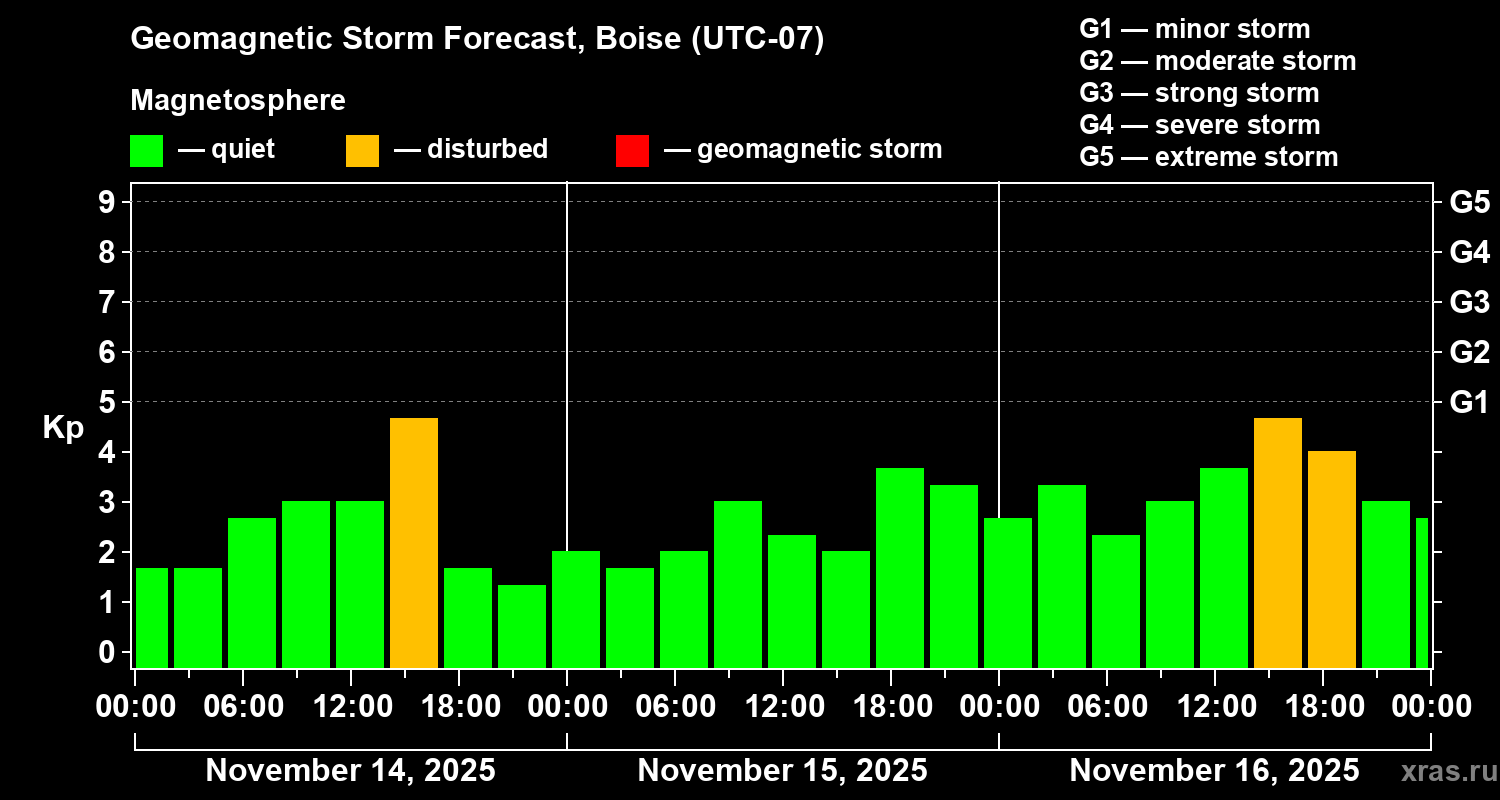 Geomagnetic storm forecast in Boise for Nov 14, 2025